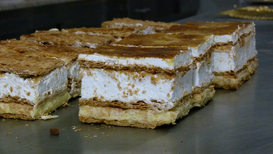 A parte de los croissants o cruasanes y minicroissants o minicruasanes, también preparamos, vendemos y distribuimos diariamente napolitanas (todo lo que se entiende por bollería fina), tartas, tartas de ración...